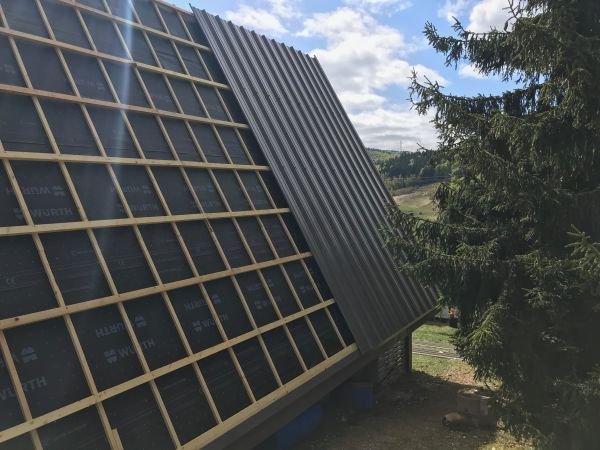 remplacement de la couverture par un nouveau bac acier couleur “lauze” RAL7006