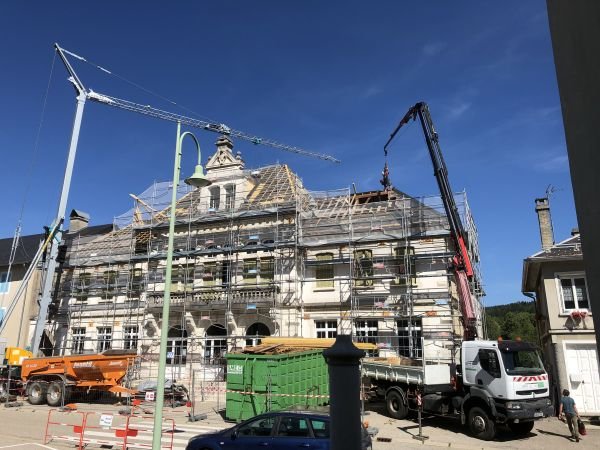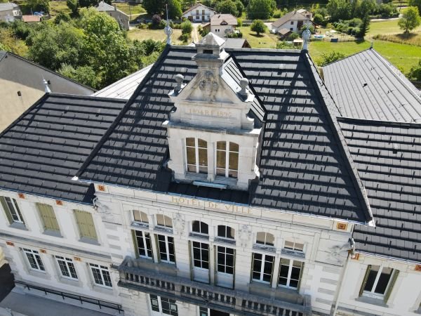 La Mairie de Brénod a subi un relooking durant l’été. Nous avons déposé la vieille ardoise en fin de vie, purgé et remplacé le bois qui a subit le poids des années et apporté un coup de jeune à la toiture en posant une couverture en tuiles terre cuite EDILIANS HP10 ardoisée. Cette tuile plate ardoisée était une alternative esthétique et économique à l’ardoise.