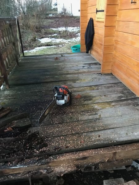 Rénovation d’une terrasse en sapin qui a subi les attaques du temps.